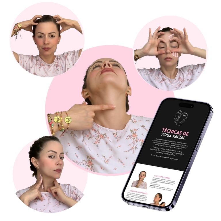 Más de 50 ejercicios de yoga facial, relajación y masajes.